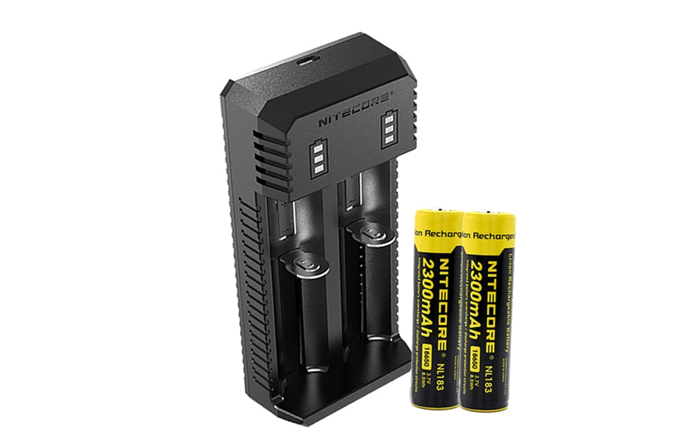 UI2 Nitecore Charger with 2x NL183 18650 2300mAh batteries