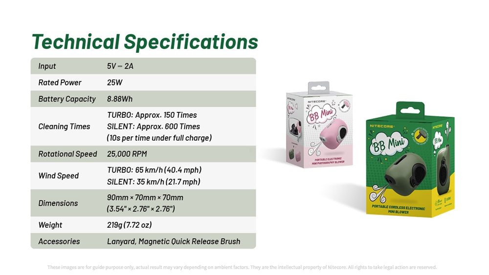 This stout little duster is the most compact Nitecore blower yet at only 3.54 inches in length. The BB Mini is equipped with a retractable magnetic brush attachment that can help you deep clean the cracks. The BB Mini filter can be easily removed and cleaned to improve airflow The BB Mini is an indispensable asset for casual photographers, to die-hard enthusiasts.