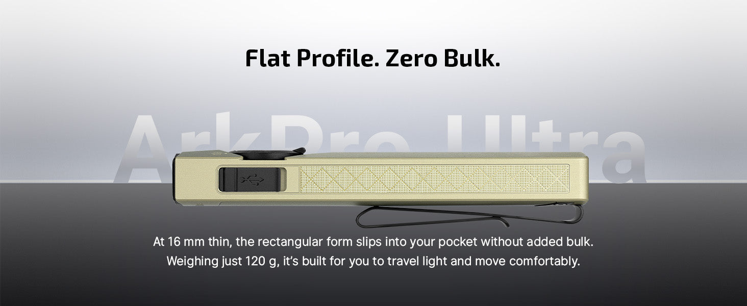 With its slim, ultra-thin profile, it easily slips into your pocket, or you can use the pocket clip to attach to backpacks, belts, and more for convenient access. Crafted from durable aluminum alloy, the ArkPro Ultra withstands drops from up to 1 meter and can be submerged to the same depth, thanks to its IPX7-rated protection. This makes it a dependable companion for everyday tasks, outdoor adventures, and more.