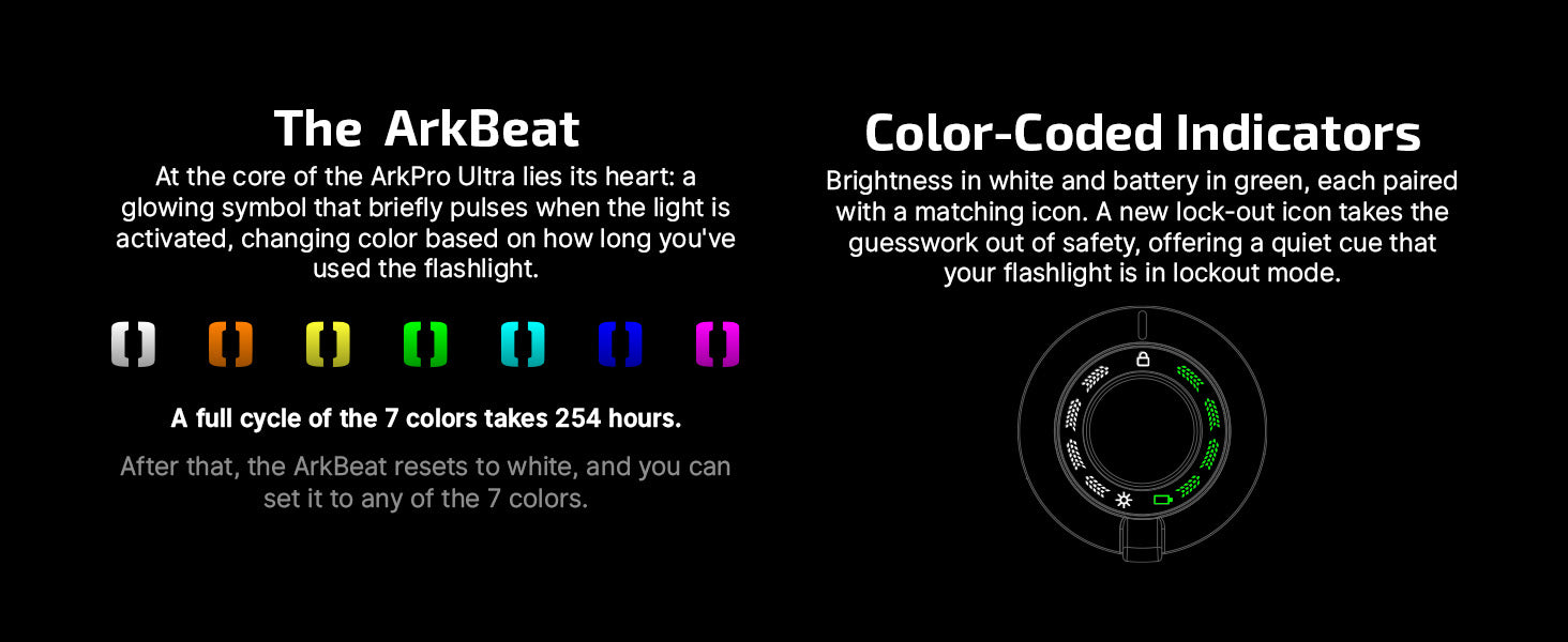 Powered by a built-in 2,000 mAh battery, the ArkPro Ultra can charge effortlessly via a magnetic charging cable that snaps onto the bottom of the light or via its USB-C port on the side of the light. Power indicators notify you when it’s time to recharge, and once fully charged, the flashlight runs for up to 14 days on its lowest setting.