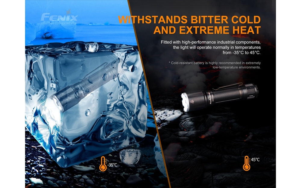 The all-weather design permits operation within extreme temperature ranges of -31 to 113 degrees, making the TK16 V2 a reliable flashlight for the harshest of conditions. A compact flashlight, the TK16 V2 comes in under six inches, making it a perfect choice as a duty light, or everyday carry with the included carry clip, lanyard, and adjustable holster. The TK16 V2's durability, power, and throw translates to a tactical flashlight ideal for patrol, EDC, search and rescue, or emergencies in any environment.