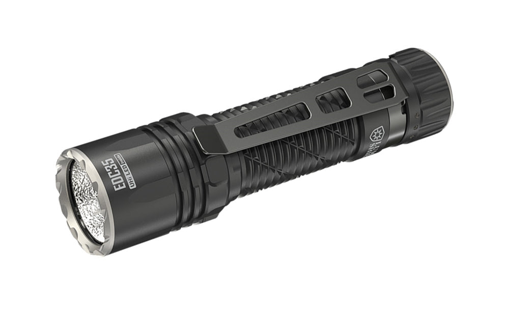 At a compact size of 4.89 inches and a weight of only 6.28 ounces with the clip attached, the EDC35 easily fits into any pocket. It is also IP68 waterproof, has 2-meter impact resistance, and has tail stand capability, ensuring reliable performance in any environment.
