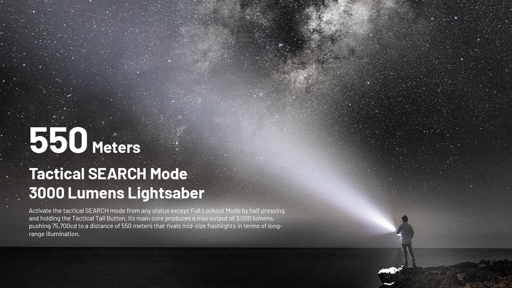 The EDC35 offers the convenience of USB-C rechargeability. Simply twist the USB-C cover at the tail to access the built-in charging port. A power indicator is included to notify you when it's done charging. Thanks to its built-in 6000mAh battery, the EDC35 can provide up to 90 hours of continuous use in low mode when fully charged and can be fully charged in just 3.5 hours. The EDC35 also features two lockout modes: Half and Full. You can still access the Search and Lumin Shield in Half Lockout Mode, while Full Lockout will fully prevent any accidental activation.