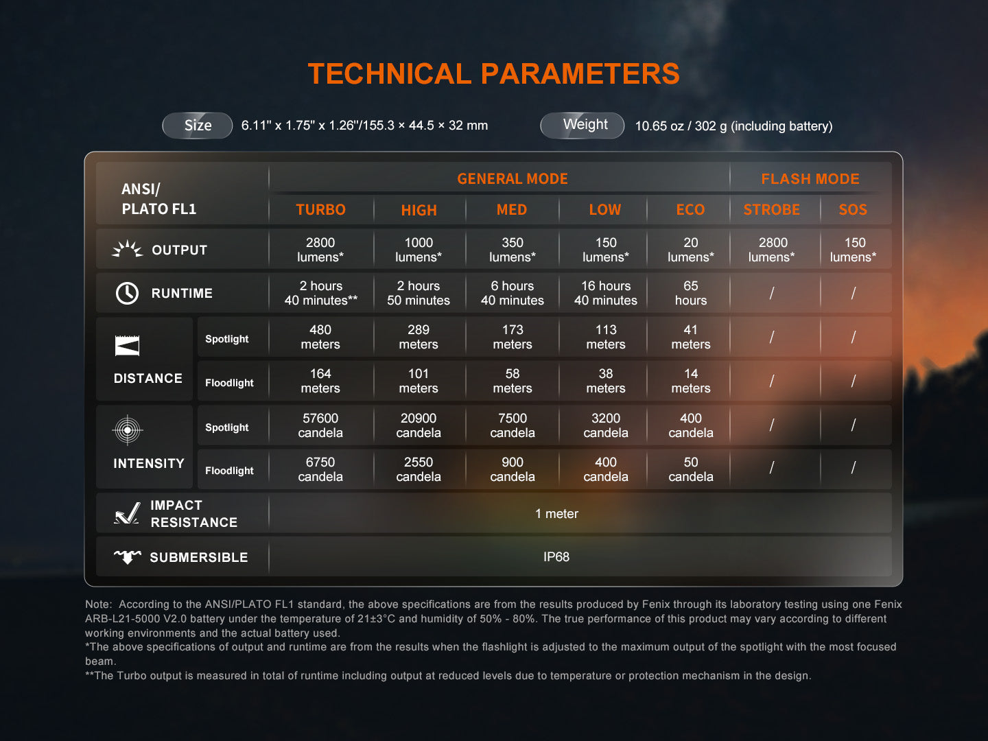 Turbo | 2800 lumens | 2 hrs 40 mins |