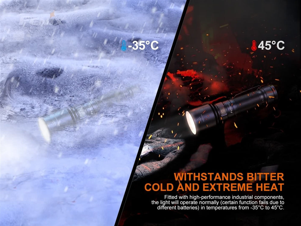 Never worry about batteries with Fenix C7. The C7 comes with a long lasting high performance 5000mAh battery that can run the light for up to 68 hours on eco mode. Use the included USB-C cable to fast charge the C7 for rapid redeployment.
