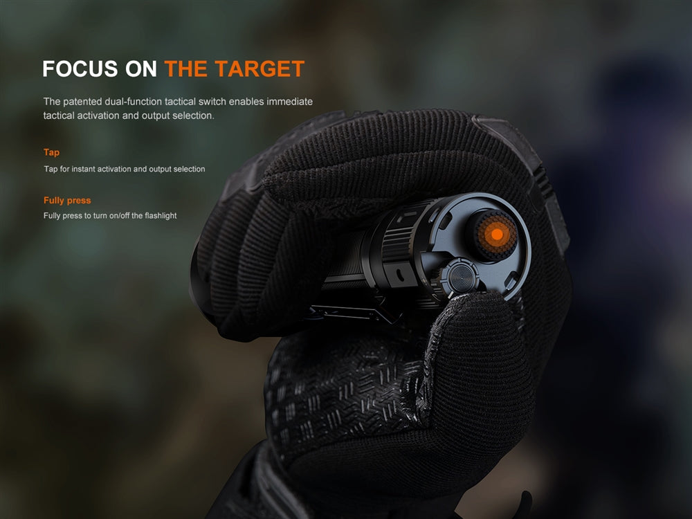 The Fenix TK22R rechargeable tactical flashlight is an ideal duty light for military and law enforcement professionals. With a maximum output of 3200 lumens, it emits a powerful beam that can reach up to 525 yards. This flashlight offers remarkable versatility through its two modes, enabling users to access six different types of lighting. The Tactical mode allows for selecting a strobe or turbo mode, while the Duty mode provides four different brightness levels. The inclusion of the FlexiSensa control on the tailcap allows for quick and easy toggling between tactical, duty, or lock modes, ensuring convenient and efficient single-handed operation.
