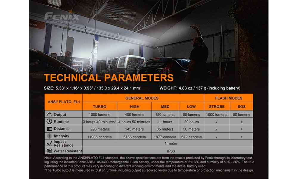 Turbo | 1000 lumen | 3 hr 40 min* |