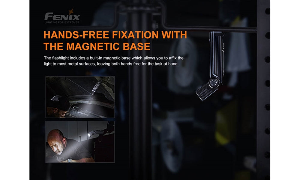 The Fenix WT25R work flashlight is a professional grade tool for the toughest jobs. The WT25R outperforms traditional work flashlights with a 1000 lumen max of evenly distributed light via the orange peel reflector. No workspace is the same which is why the WT25R can adapt to any situation with its adjustable pivoting head. Then you can position the WT25R wherever you please with its magnetic base, titanium coated pocket clip, or just tail stand it.
