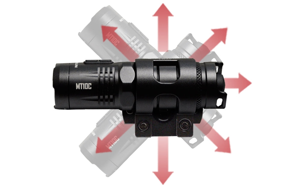 We expertly paired the Nitecore MT10C, a low profile and high capacity tactical flashlight with the LMA1, a rotary helmet mount, to make an ideal helmet mounted tactical flashlight setup. The Nitecore LMA1 helmet mount was designed to mount any 1" diameter body flashlights on Ops-Core ARC Rails. The mount rotates the flashlight 360° with eight locking positions to provide lighting in any direction. To adjust the light angle, simply pull the mount outward slightly and turn until it locks into position. Supports quick and easy one-handed adjustments for any tactical scenario.