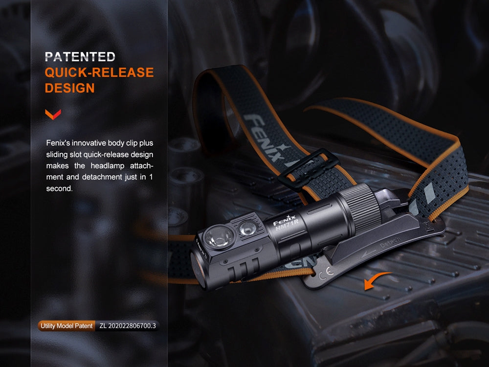 The Fenix HM71R is a versatile and durable industrial-grade headlamp that offers up to 2700 lumens of powerful spotlight illumination, capable of lighting objects as far as 251 yards away. It also features a 500-lumen flood light for wide-angle illumination. With the quick-release clip, you can easily detach the headlamp from the headband and use it as a right-angle flashlight, which can be clipped onto your pocket, stood on a flat surface, or attached to a magnetic surface for hands-free operation. The headlamp's large side switch is glove-friendly and recessed to prevent accidental activation, making it easy to operate. You can activate the spotlight by holding the side button or activate the floodlight by double-tapping, making it ideal for a wide range of activities, including caving, maintenance, patrolling, industrial work, and search and rescue.