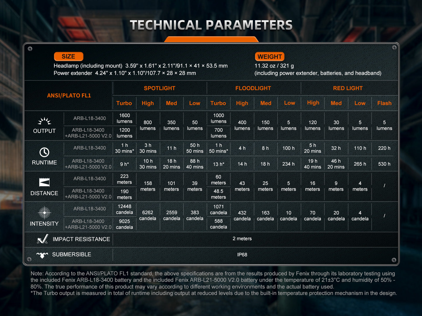 Turbo | 1600 lumens (headlamp) | 1200 lumens (+extender) | 1 hr 30 mins | 9 hours |