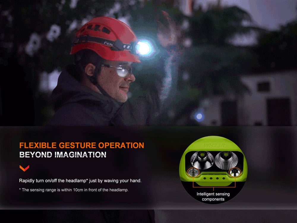 The WH23R is completely hands-free with an intelligent motion sensor that activates the headlamp by just waving your hands in front. The large rotary switch on the side allows you to intuitively control the brightness and is glove friendly. The WH23R is a no-frills work headlamp that covers all of your needs of hands-free lighting.