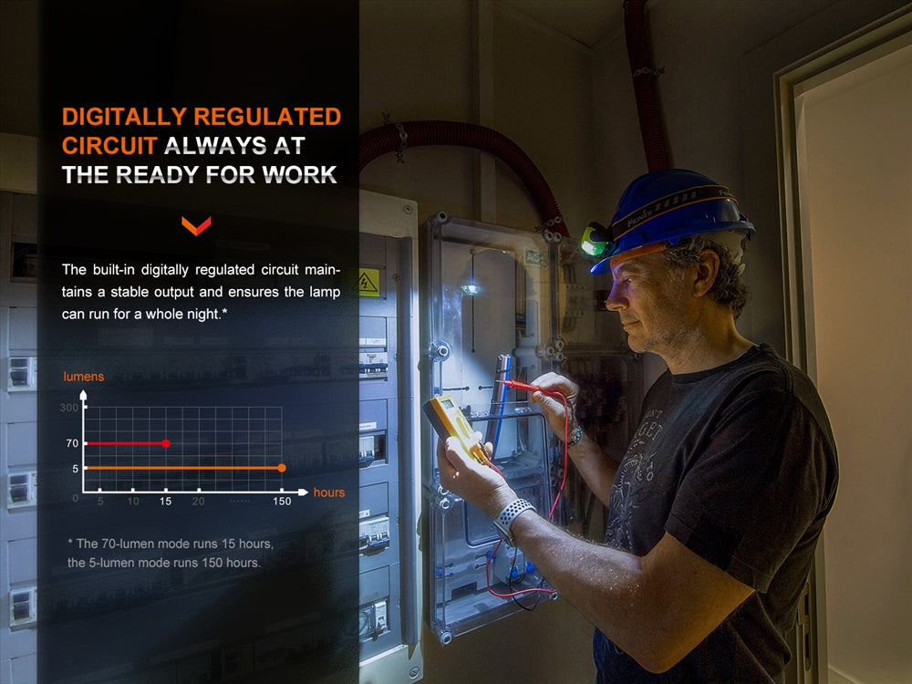 The Fenix WH23R has a built-in 2000mAh battery that can be fast charged via its USB-C port in under 1.5 hours so you are back on the job. The spotlight boasts a max runtime of over 35 hours and the floodlight can operate in low mode for over 150 hours for dedicated lighting.