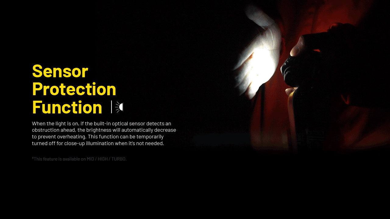 The NU53 offers remarkable versatility with its three lighting outputs: Primary White Light, Reading Light, and Red Light. When using the primary white light, you can access up to three different brightness levels by short-pressing the power button, or activate the turbo mode by double-pressing the power button. When the light is off, double-press the power button to access the reading light, providing two low-brightness modes. Alternatively, switch to the Red Light by long-pressing the mode button when the light is off. The red light protects your night vision or is used as a long-lasting signal light with three modes: Low, High, and Slow Flashing. The NU53 also features modes like SOS and Beacon to assist you in any emergency. Additionally, a proximity sensor automatically adjusts brightness to prevent overheating and blinding reflections.