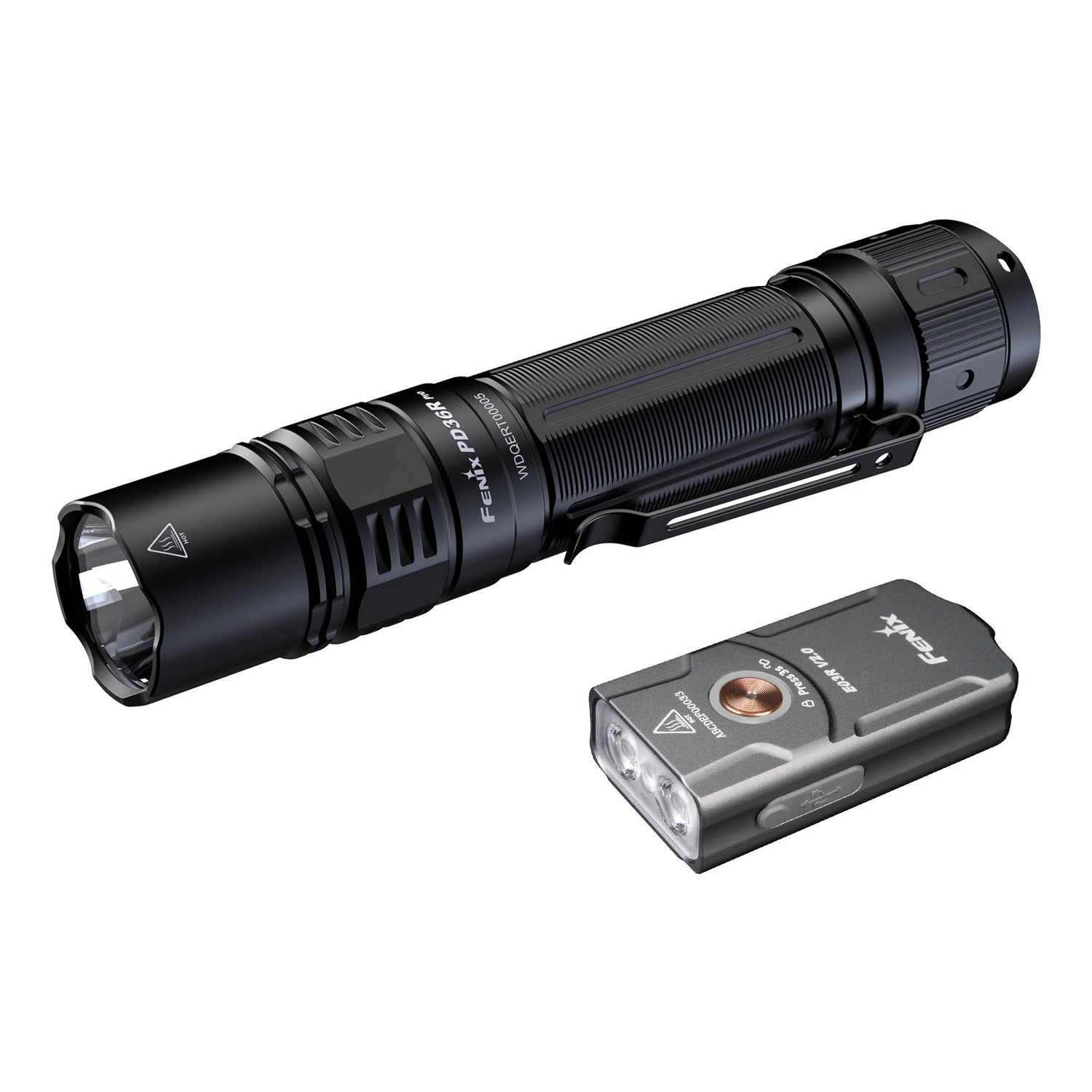 Illuminate your adventures with the perfect pairing of Fenix's PD36R Pro tactical flashlight and the E03R v2.0 keychain flashlight as the backup flashlight. Whether you're braving the wilderness or navigating urban landscapes, these cutting-edge lights provide unparalleled brightness, versatility, and durability. The Fenix PD36R Pro Kit features the PD36R Pro USB-C tactical flashlight, capable of shining up to 2800 lumens and throwing light up to 415 yards. With its five brightness modes and dedicated strobe function, the PD36R Pro is versatile enough to serve as an everyday carry (EDC) flashlight for daily tasks or as a duty light for professional use.