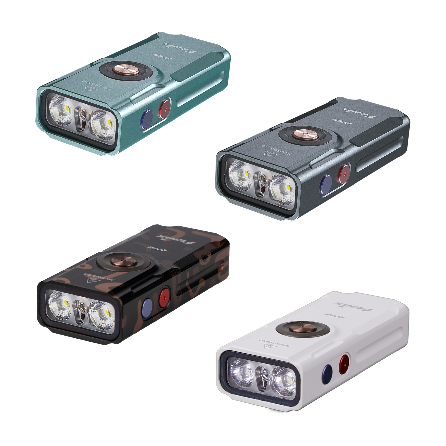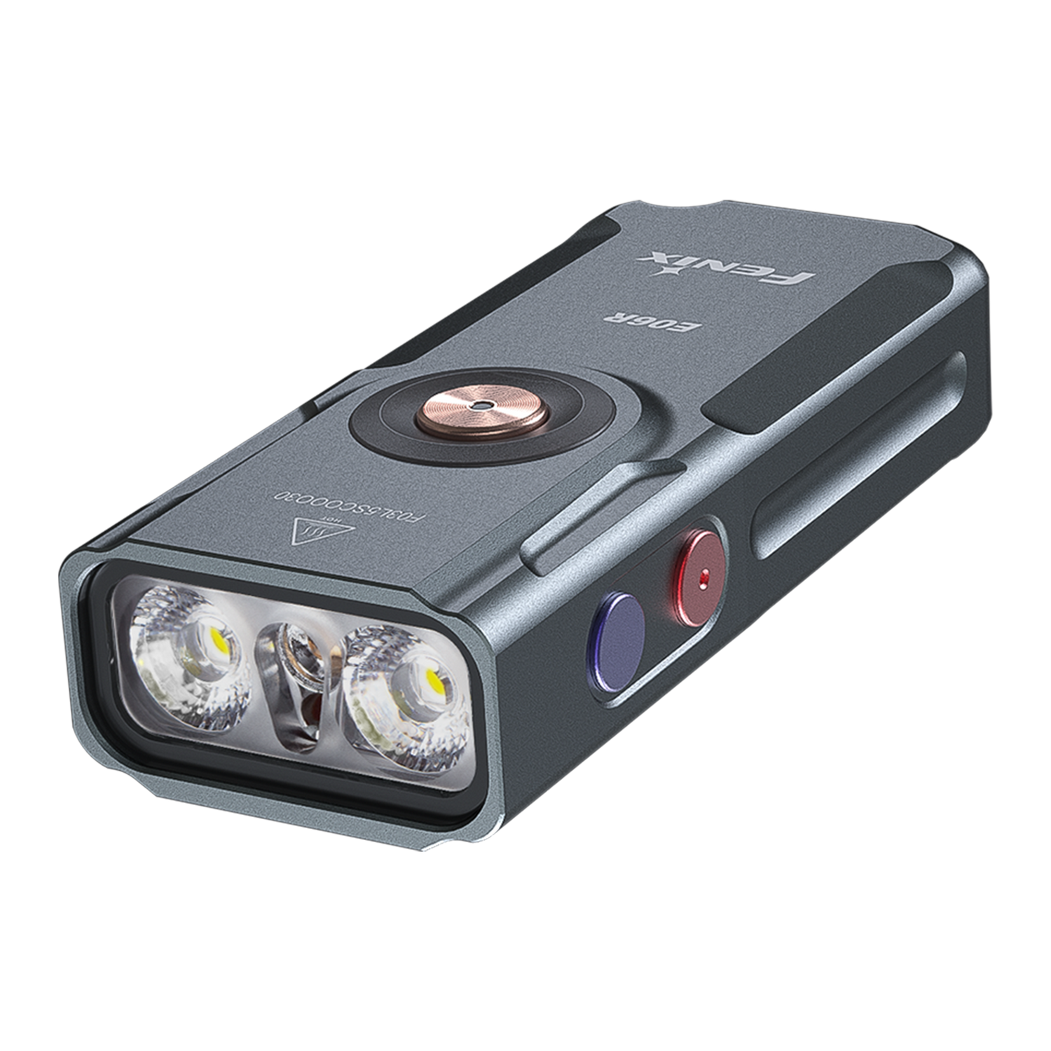 The Fenix E06R is a versatile EDC flashlight capable of delivering up to 700 lumens and casting light up to 120 yards, making it perfect for everyday carry or outdoor activities like camping, hiking, and more. It offers four distinct brightness levels, along with UV light and a red laser pointer. The E06R is easy to operate, with a main switch on its body to control the white light and two separate side buttons to manage the UV and laser outputs. Its UV light is ideal for detecting counterfeit currency, identifying minerals, and inspecting cleanliness, while the red laser is a handy tool for surveying, presentations, and long-distance demonstrations. Additionally, the flashlight features a circular breathing light that can flash in red, blue, a combination of red and blue, or multi-color, making it useful for signaling or creating atmospheric lighting.