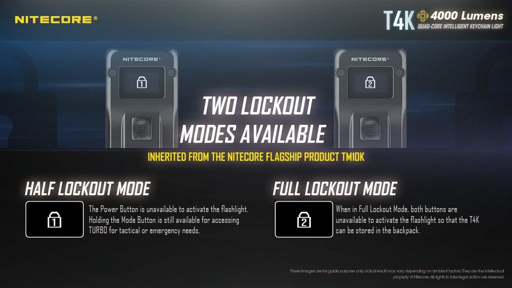 The Nitecore T4K's built-in USB-C fast charging fully juices the T4K in under 1.5 hours and provides over 67 hours of effective runtime per charge. The OLED display gives real-time information on battery level and charging status. If that's not enough, the two lockout functions further improve battery life and performance. With multiple built-in charging safeguards, IP54 weather resistant rating, and a 66 pound rated keyring the T4K is the definition of rugged.