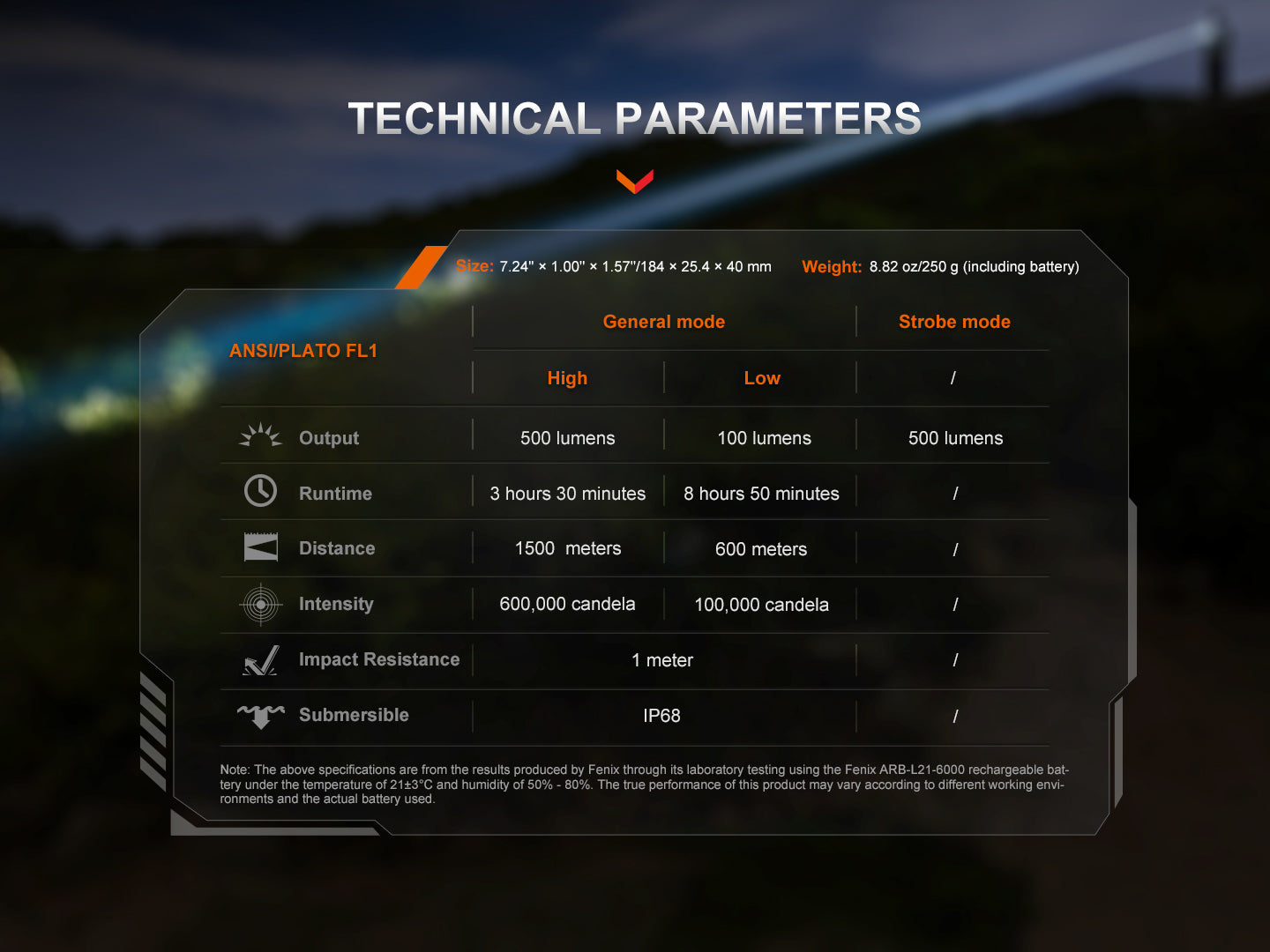 The Fenix TK30R is a powerful, long-range LEP flashlight designed for situations that demand extreme throw and focused illumination, such as search and rescue, signaling, hunting, and patrolling. Unlike traditional LED flashlights, TK30R keeps the beam sharply focused, minimizing light scatter even over vast distances. With an impressive beam distance of up to 1640 yards and a maximum brightness of 500 lumens, the TK30R can light up objects almost a mile away.