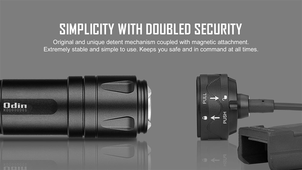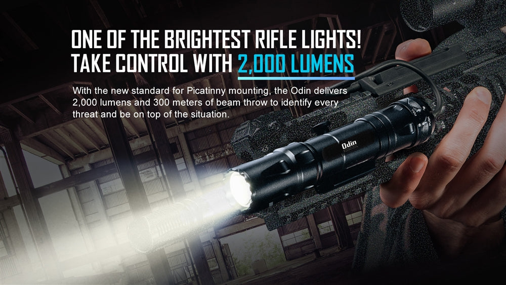 The Odin places tactical operation at the forefront of its design and functionality. The tail switch is silent while offering plenty of tactile feedback during activation. The Odin further preserves silent operation by providing a noiseless vibration alert as a low battery warning as opposed to a traditional LED indicator. All of these are encompassed in a sturdy aluminium alloy, impact resistant, and IPX8 waterproof frame making the Odin a robust tactical light you can count on under the most precarious situation.