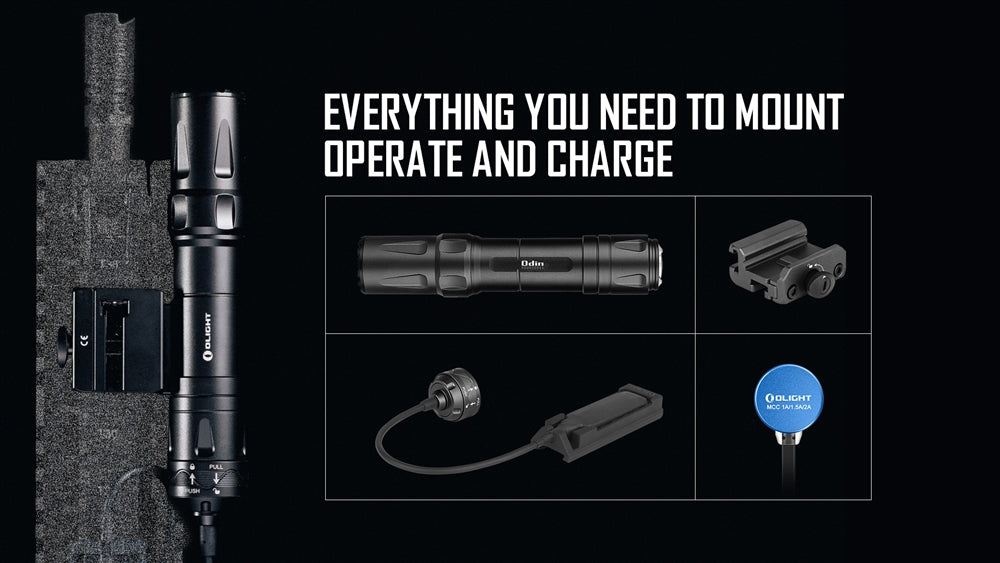 The Olight Odin is more than just a flashlight. It is a complete system for any platform with accessory rails. At its core, the Odin is a powerful 2000 lumen max flashlight that sports a 328-yard max beam throw. The light has a built-in locking plate that can quickly attach and detach to the included rail mount. Additionally, the Odin comes with a locking magnetic pressure switch to provide precise control of the light right at your fingertip. This sleek new package is a must-have flashlight kit for everyone.