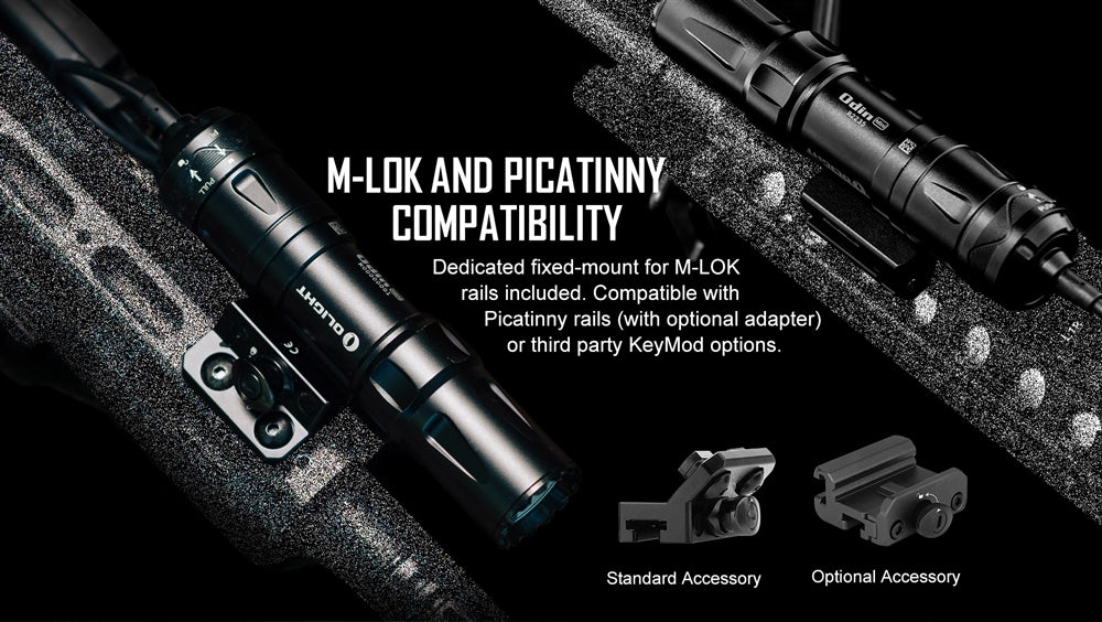 The Odin places night operations at the forefront of its design and functionality. The tail switch is silent while offering plenty of tactile feedback during activation. The Odin Mini further preserves silent operation by providing a noiseless vibration alert as a low battery warning as opposed to a traditional LED indicator. All of these are encompassed in a sturdy aluminum alloy, impact-resistant, and IPX8 waterproof frame making the Odin a robust flashlight you can count on under the most precarious situation.