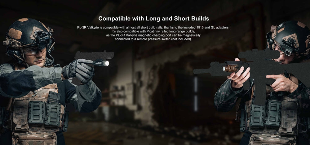 The PL-3R Valkyrie is a highly compact and rechargeable rail mount flashlight with an adjustable sliding key-block. With a maximum output of 1500 lumens and a throw of 224 yards, it provides a 15% increase in light output compared to the PL-3, making it an ideal choice for field operations or personal safety.