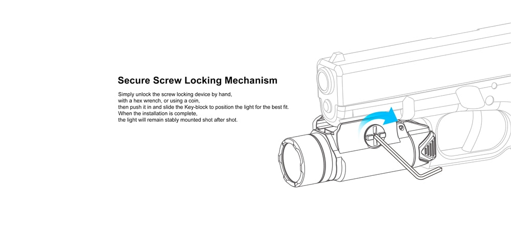 The Olight PL-3R comes with a new front-to-back sliding key block for the perfect fit and mate with all handpew platforms. The large locking screw is glove friendly with raised grip portions for a tighter and more secure fit on your platform. The PL-3R comes with both a ML-STD picatinny tooth, or GL rail tooth that can be replaced to fit with nearly all of the available platforms on the market. You can easily attach the Olight PL-3R to full size or compact pistols to enhance your platform.