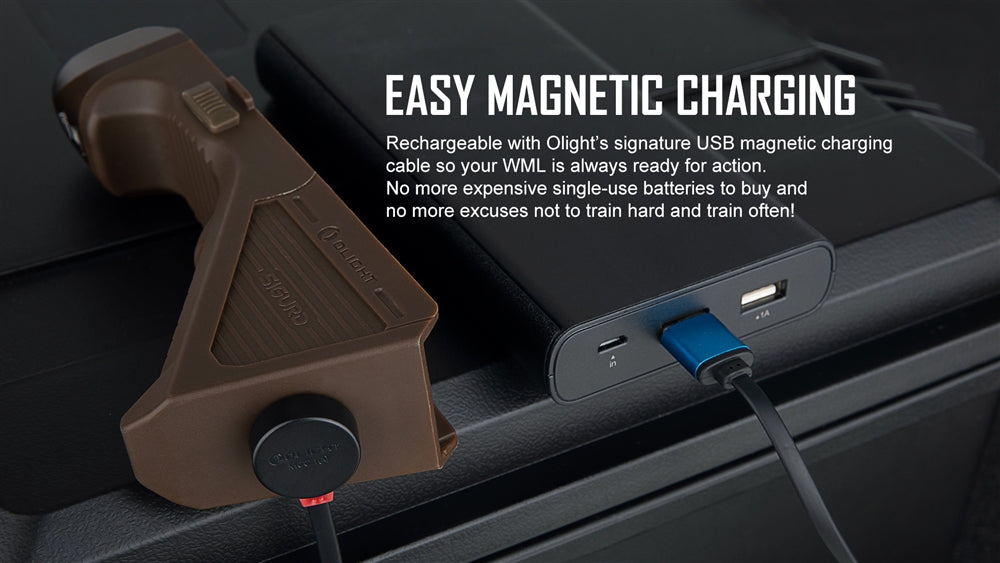 The Olight Sigurd provides 4-hour extended runtimes and fast recharging. On the rear of the Sigurd is a magnetic charging ring for fast snap-on charging with the included MCC 1A charging cable. This way you never have to dismount your Sigurd from the rail.