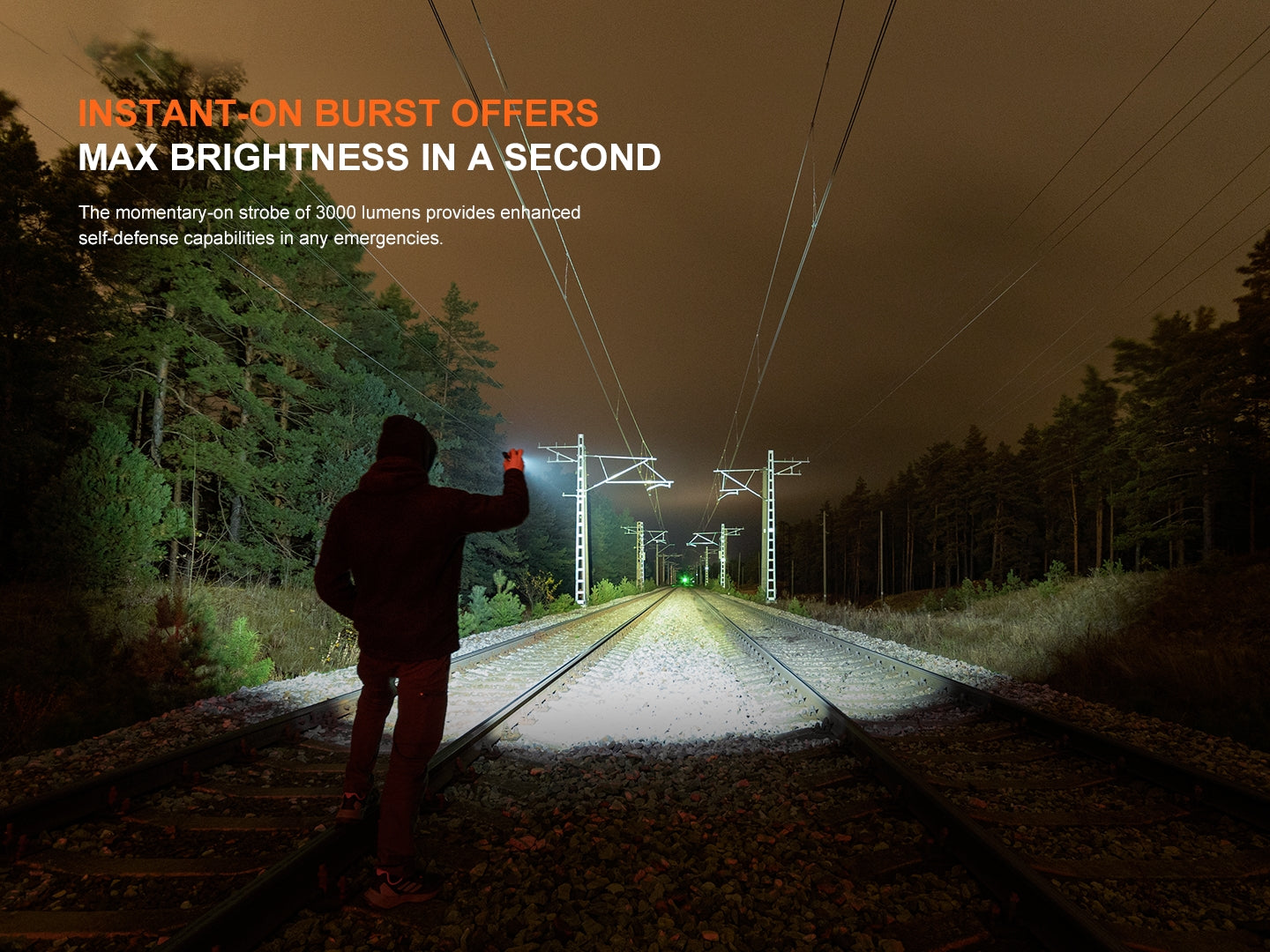 The Fenix WF25RM is a powerful duty flashlight engineered for law enforcement and demanding worksites such as factories, railways, and warehouses, as well as outdoor applications like patrolling or search and rescue. With an impressive output of up to 3000 lumens and a beam throw of 404 yards, it provides exceptional visibility for critical tasks. The WF25RM offers four white light settings and a Strobe mode for versatile use, while its built-in 500mW UV LED adds functionality for detecting leaks, contamination, and counterfeit documents. Operating the flashlight is effortless thanks to its intuitive all-in-one switch, enabling quick access to your desired output. Additionally, the proximity downshift function automatically reduces brightness when close to an object, preventing overheating and ensuring safety.