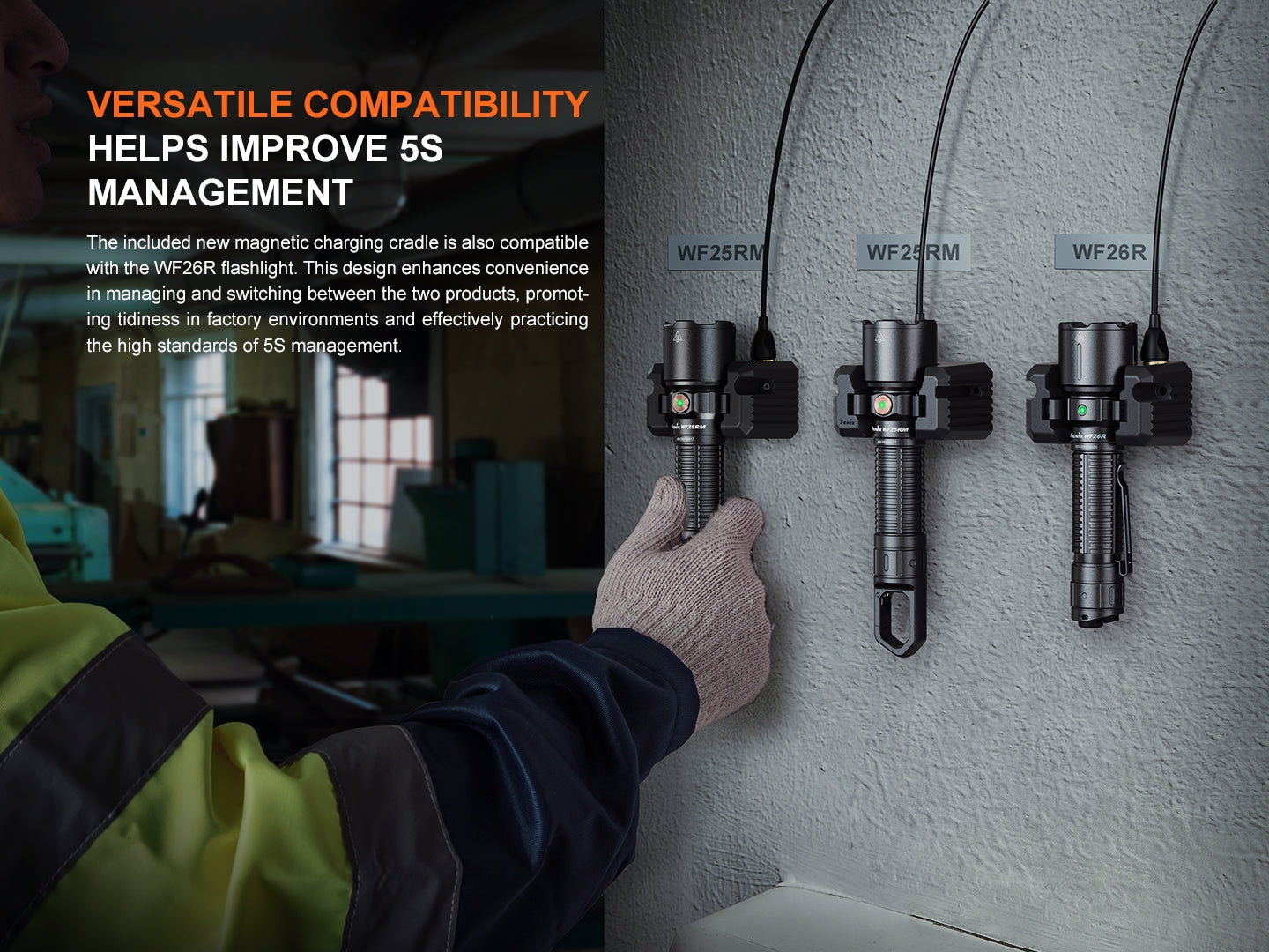 Recharging the WF25RM is simple with its updated magnetic charging cradle—just snap the flashlight into place, and it fully recharges in just 2.5 hours. For added convenience, the cradle's cable is detachable, allowing you to charge the flashlight directly if needed and its included battery is USB-C rechargeable. The included cradle is wall-mountable for easy storage and is also compatible with the Fenix WF26R, enabling you to streamline your charging setup.