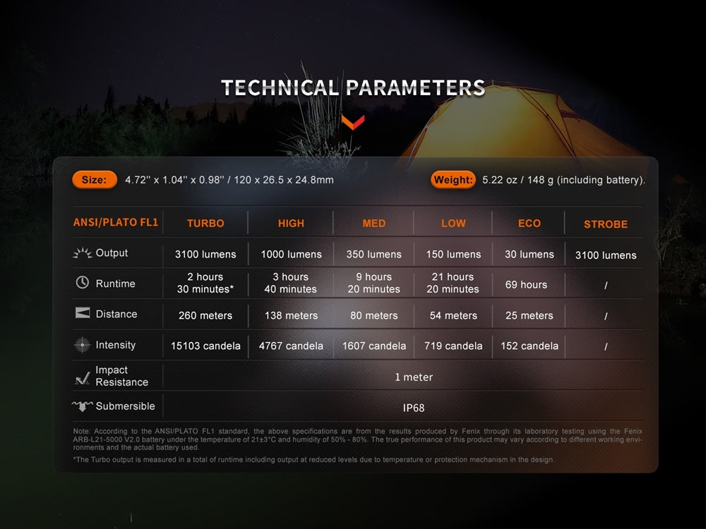 Turbo | 3100 lumens | 2 hr 30 min |