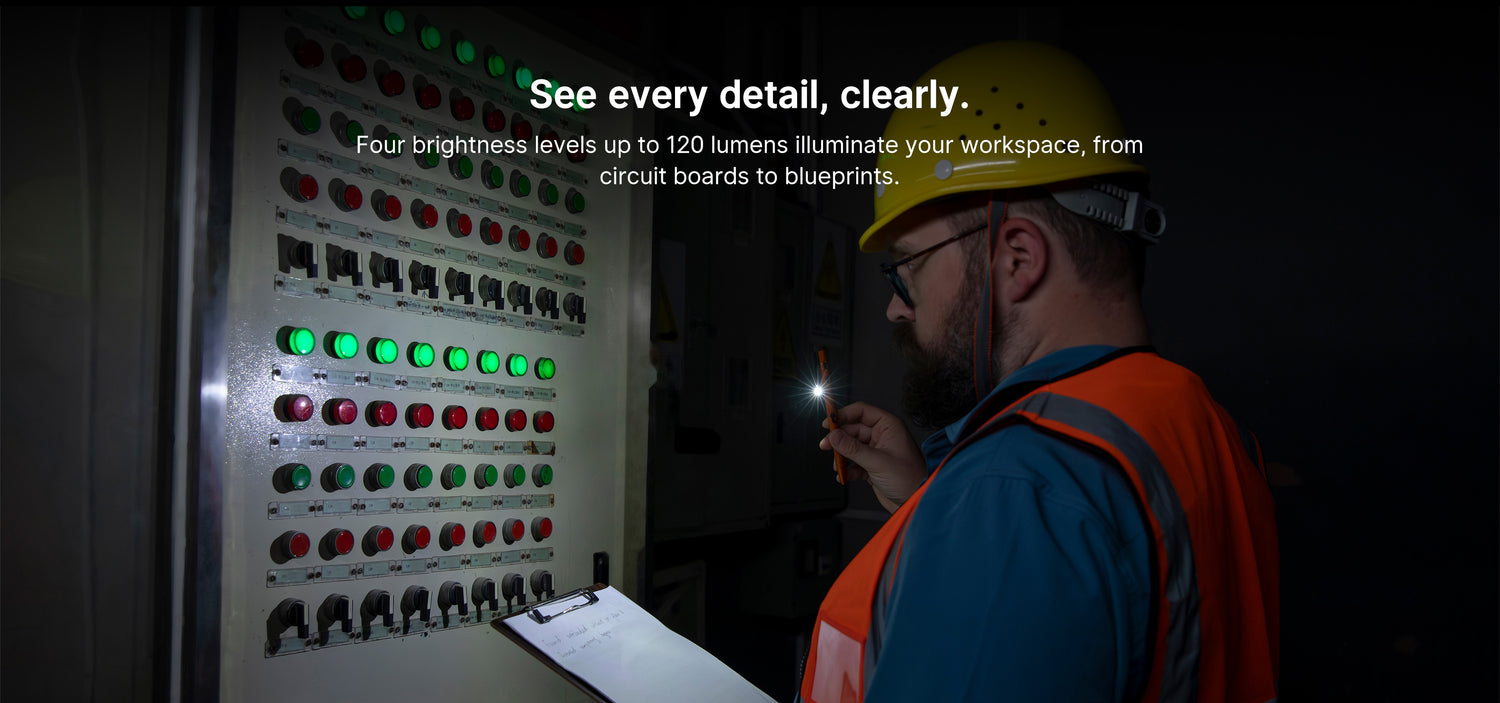 The clip-mounted white light delivers up to 120 lumens across four brightness levels, providing hands-free illumination for reading documents, checking labels, or close-up inspection. A two-stage red clip light preserves night vision and includes an SOS mode for emergency signaling. For meetings and field briefings, the built-in green laser pointer delivers crisp, accurate pointing for confident presentations and on-the-job use.