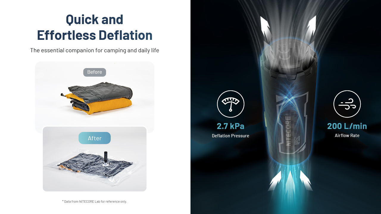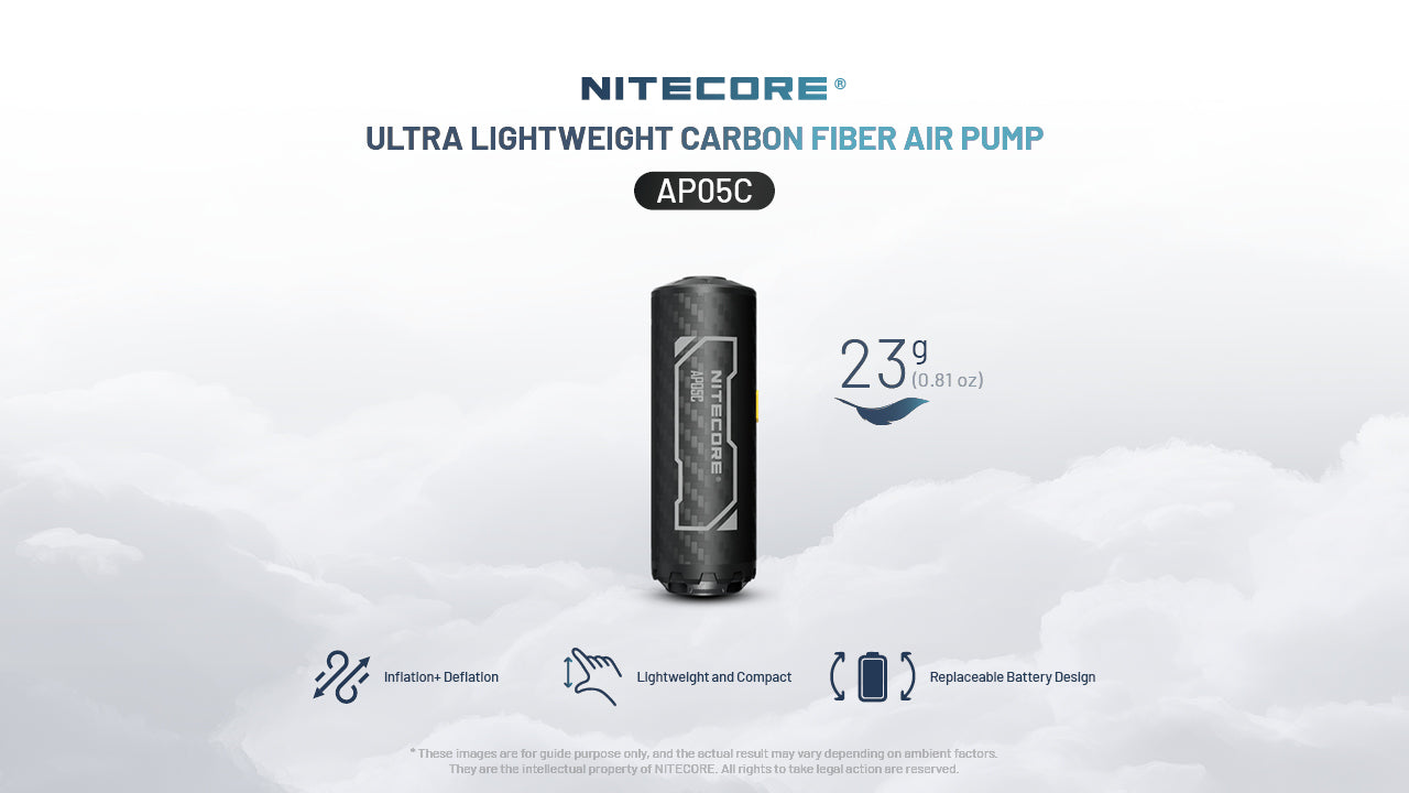The Nitecore AP05C is an ultra-lightweight carbon fiber air pump that delivers impressive power in a compact body. This portable electric pump can inflate an inner tube in just 22 seconds and makes quick work of inflating or deflating items like air beds, vacuum bags, sleeping pads, and more, making it an essential tool for camping and other outdoor adventures.