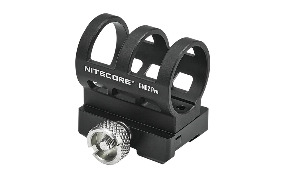 The Nitecore GM02 Pro is constructed from aero-grade aluminum alloy with HA III military-grade hard-anodized finish for rugged durability. A large stainless steel thumb nut alloys for easy adjustment and ensures stable mounting on a Picatinny rail. It can fit flashlights with a body diameter of 25.8mm-26.5mm and fits models like the Nitecore SRT7 SRT7i, SRT6i, MH12 Pro, and MH25 Pro.
