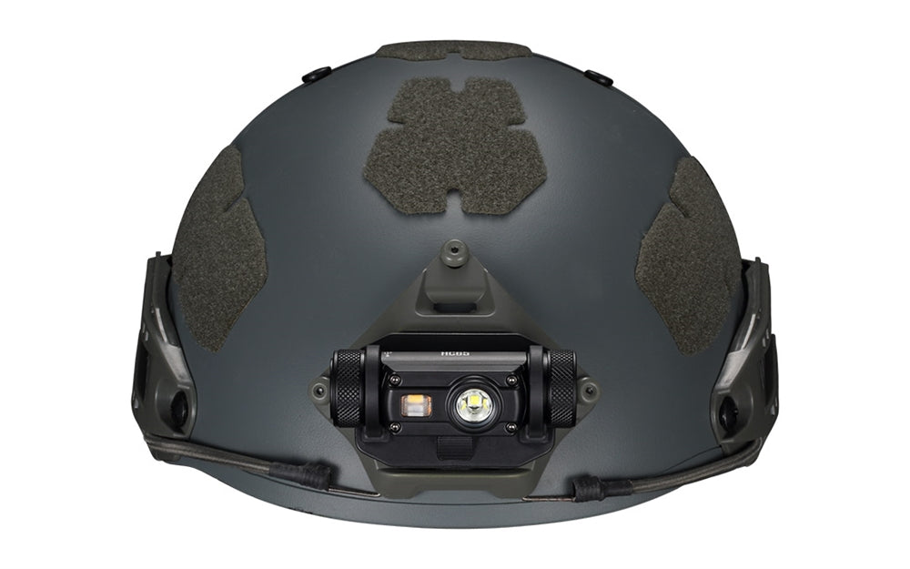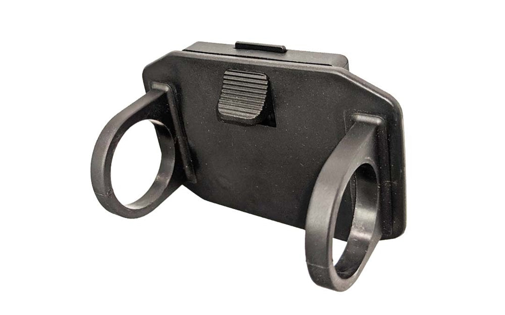 A Nitecore headlamp bracket designed specifically for helmet NVG mounts. Constructed with a hardened plastic frame and rubber headlamp connecting rings. Includes a push-pin quick-release feature for rapid helmet mounting and uncoupling.