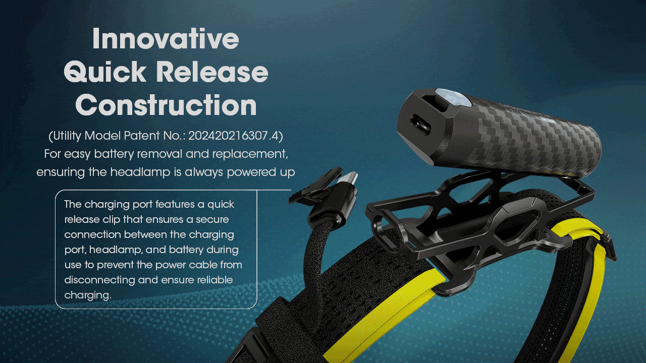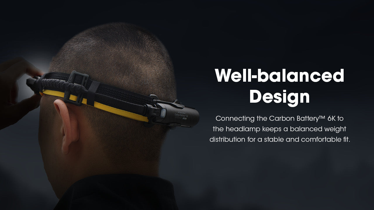 The Nitecore Carbon Battery 6K Kit can double or triple the runtime of Nitecore headlamps such as the NU40, NU43, NU45, NU50, and HC65 UHE. By connecting directly to the headlamp, the Carbon 6K Battery Kit activates the headlamps' Performance Mode, ensuring long-lasting illumination and stronger brightness. It first draws power from the battery kit, maximizing its runtime before utilizing the headlamp's internal battery.