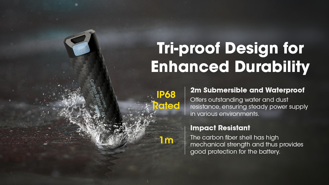 The Nitecore Carbon Battery 6K is a lightweight, portable power bank with a high capacity of 6000mAh, designed to meet all your charging needs no matter where you are. Its compact size and large battery capacity give it an energy density of 245.5 WH/kg, making it the highest density among its competitors.
