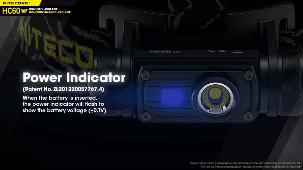 The HC60 v2 comes with a 3400mAh high capacity 18650 battery, boasting an exceptional 680 hours of runtime on ultra low. This headlamp has also been upgraded with a USB-C charging port for improved charging times! The LED light beneath the power switch doubles as a charging status indicator and battery power indicator.