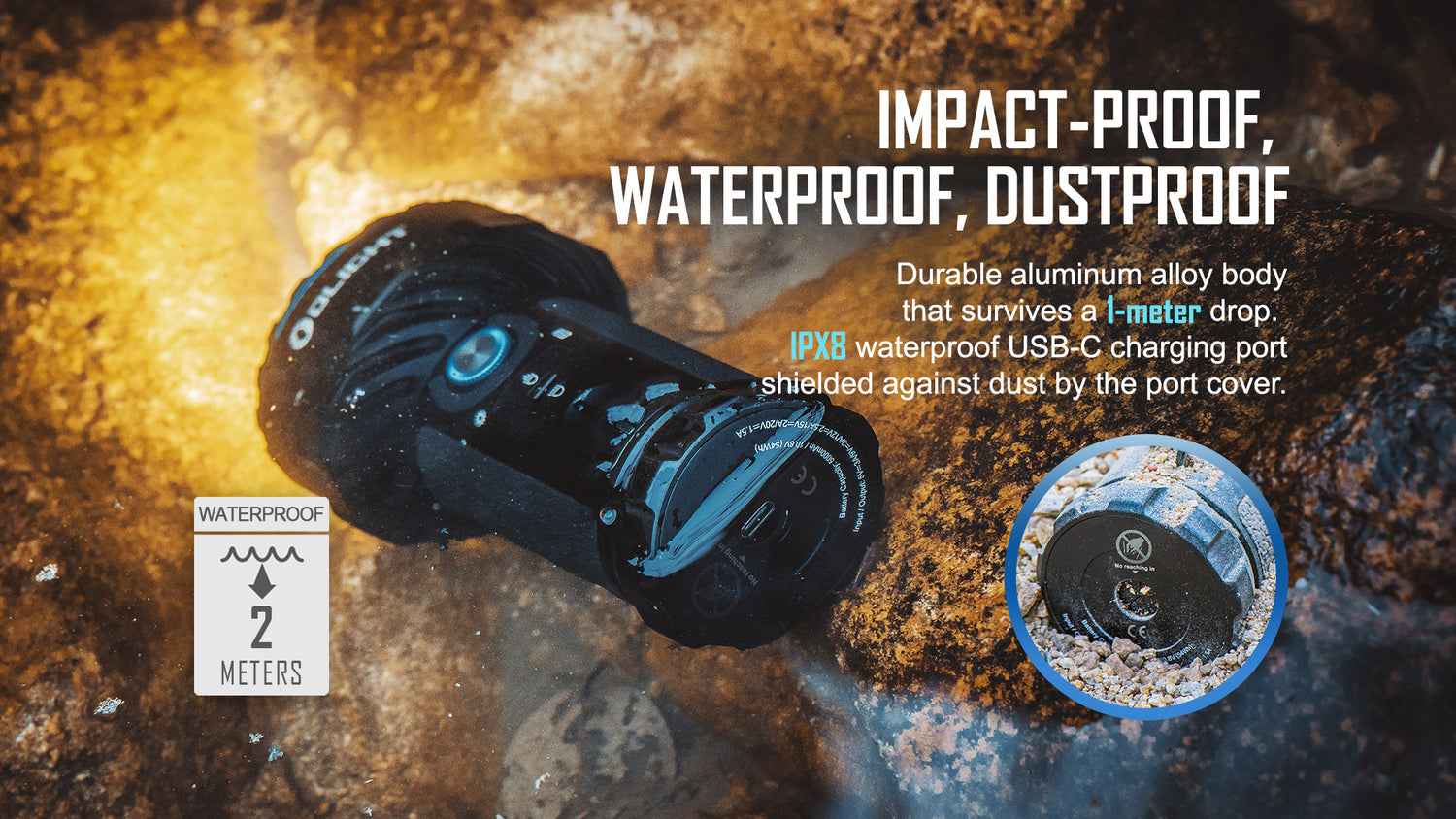 IP Rating IPX8 - 2m waterproof and submersible