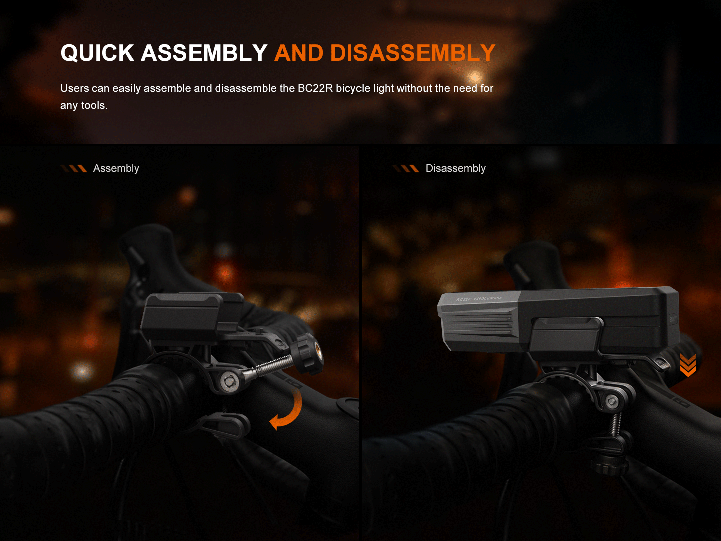 The quick-release design makes mounting and dismounting effortless. Its dual mounting options—above or below the handlebar—adapt to your setup, whether you’re conquering rugged terrains or navigating city commutes. Compact and lightweight at 4.53 inches and 5.54 ounces, it’s easy to carry and maneuver on your bike or in your bag when it’s time to go. With an IP66 waterproof rating and 1.5-meter impact resistance, the BC22R is built to withstand tough conditions, delivering dependable performance for night rides, commutes, and road cycling adventures.