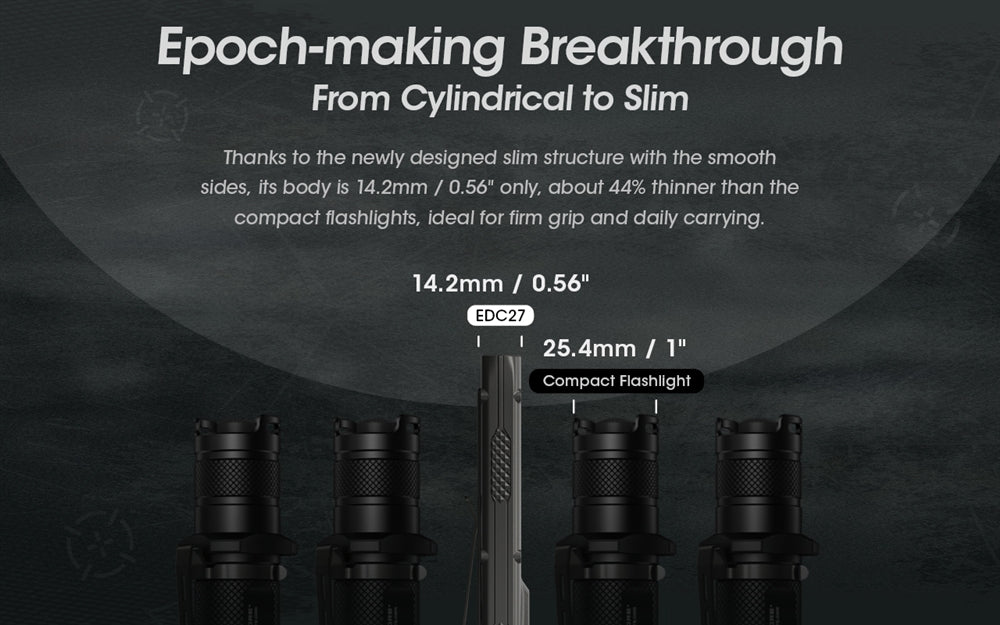 This product has been discontinued and is no longer available. Check out the Nitecore EDC27 UHi 3100 Lumen Ultra Slim Flat EDC Flashlight.