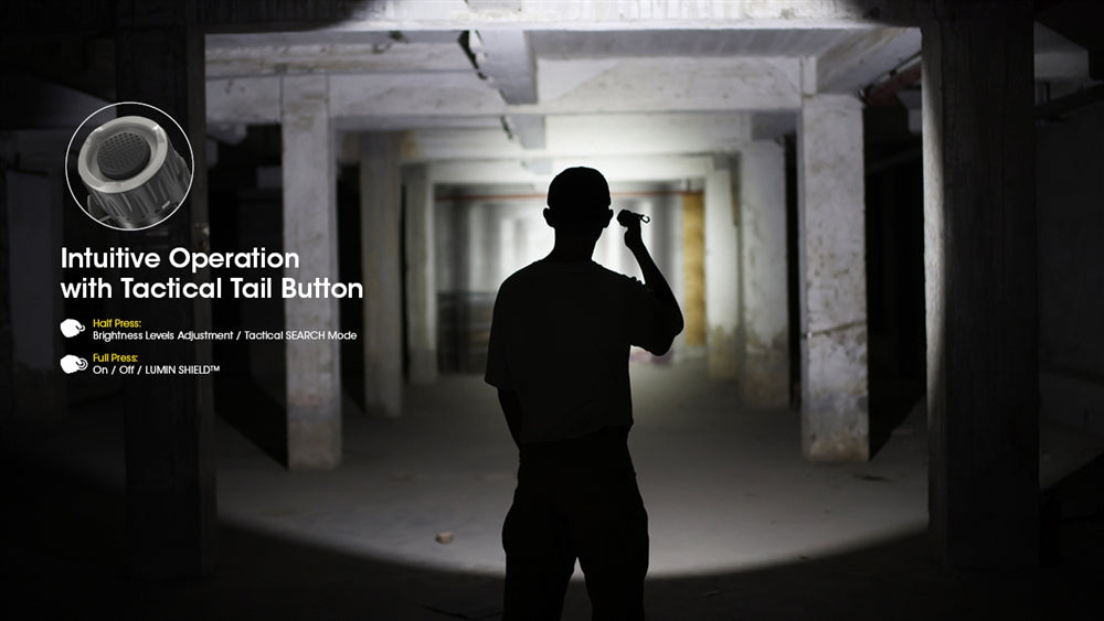 The Nitecore EDC33 is an EDC flashlight that boasts an amazing brightness and throw, making it an ideal choice for everyday carry. Featuring the innovative NiteLab UHi 20 MAX LED, the EDC33 delivers a powerful 4000 lumen output and an impressive throw of 492 yards. Fully press the tail switch to power the light on or off. While the light is on, perform a half-press to cycle through four different brightness levels. The selected brightness level is memorized even after turning off the light. For momentary modes, half-press and hold to activate the 1700 lumen spotlight for searching, or fully press and hold to engage the full 4000 lumen output. The EDC33 intelligently decreases brightness when in close proximity to prevent overheating.