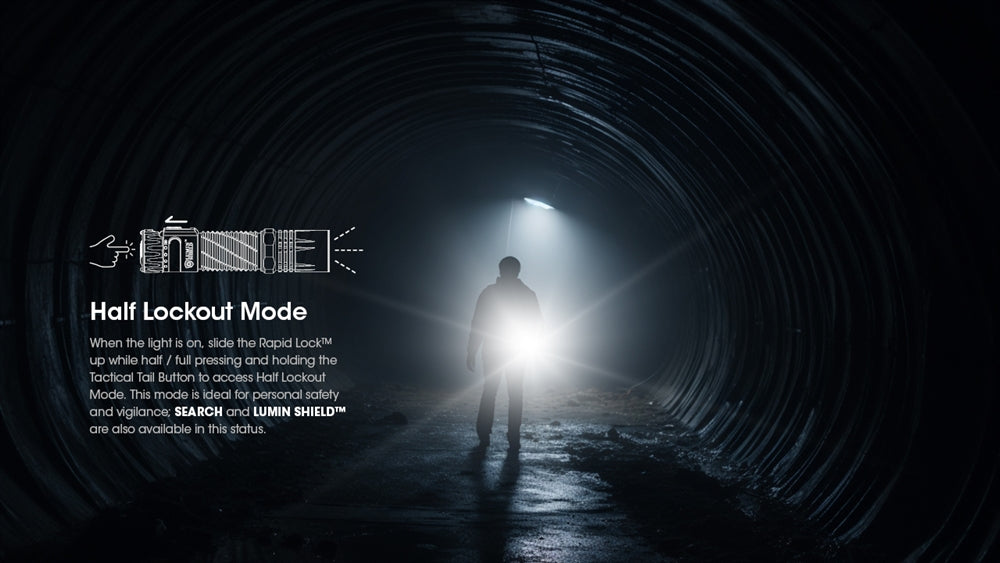 The EDC33 offers the convenience of USB-C rechargeability. Simply twist the USB-C cover at the tail to access the built-in charging port. A power indicator is included to notify you when it's done charging. When fully charged, the EDC33 can provide up to 63 hours of continuous use in low mode and can be fully charged in just 2 hours. The EDC33 also features two lockout modes: Half and Full. In Half Lockout Mode, you can still access the Search and Lumin Shield, while the Full Lockout will fully prevent any accidental activation.