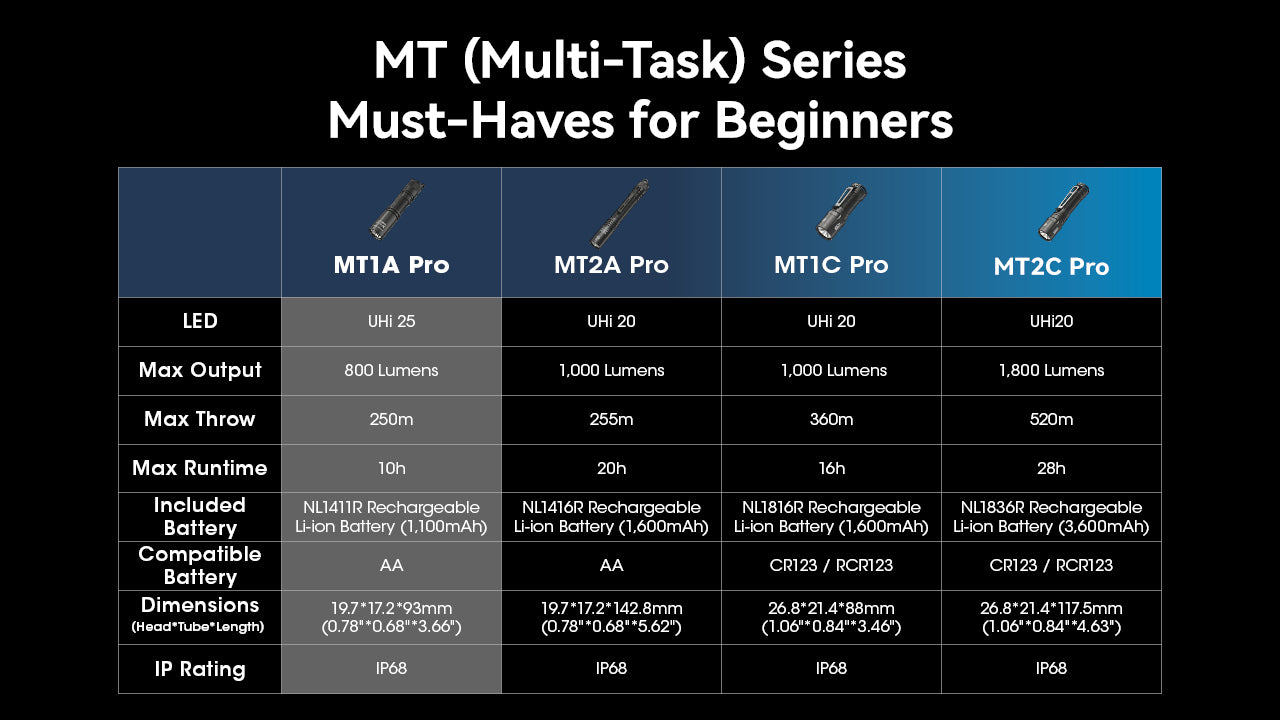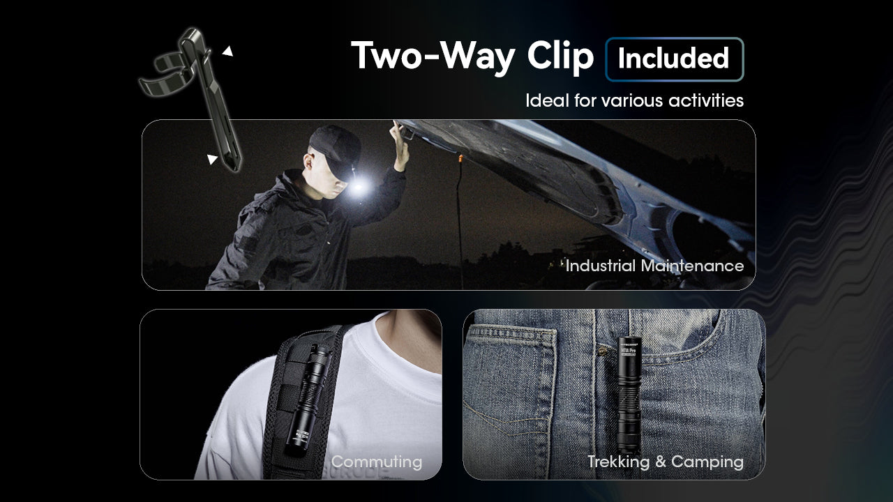 Weighing only 1.83 ounces, this flashlight is highly portable and easily fits in your pocket for everyday carry. Alternatively, you can use the clip to attach it to backpacks, belts, or other items for quick access. Additionally, the MT1A Pro can withstand impacts of up to 2 meters, holds an IP68 rating, and employs patented advanced temperature regulation, ensuring reliable performance in any environment day in and day out.