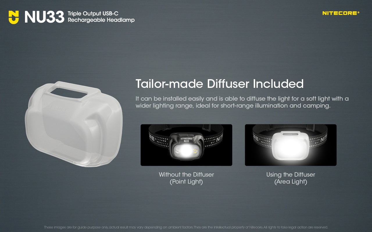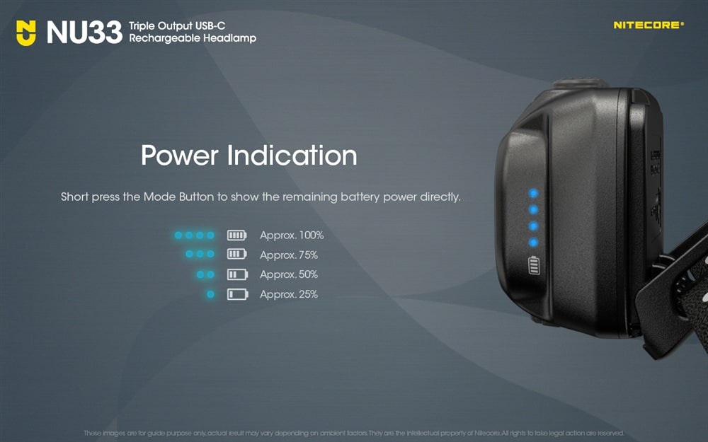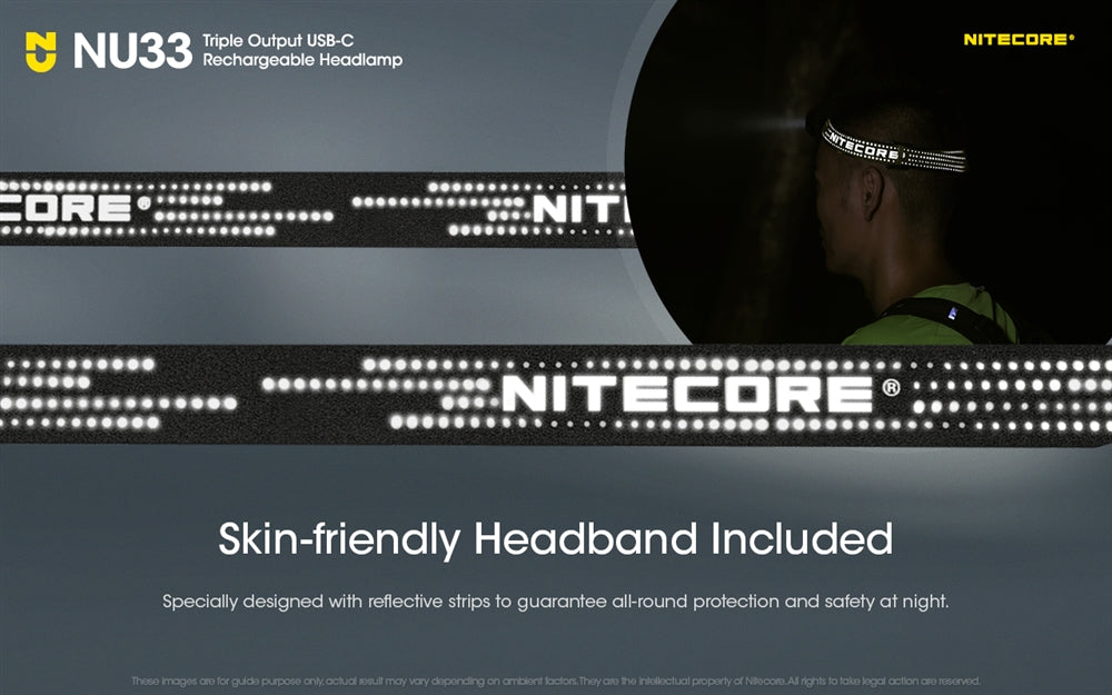 This NU33 is rated IP66 water resistant, features a bold new aerodynamic unibody design that efficiently dissipates heat and looks stylish to boot. The newly designed headband is skin-friendly and has large bright reflective strips to guarantee visibility and protection. 15% smaller than NU32, the lightweight NU33 takes the center stage as Nitecore's new all-rounder headlamp for night running, outdoor adventures, or camping.
