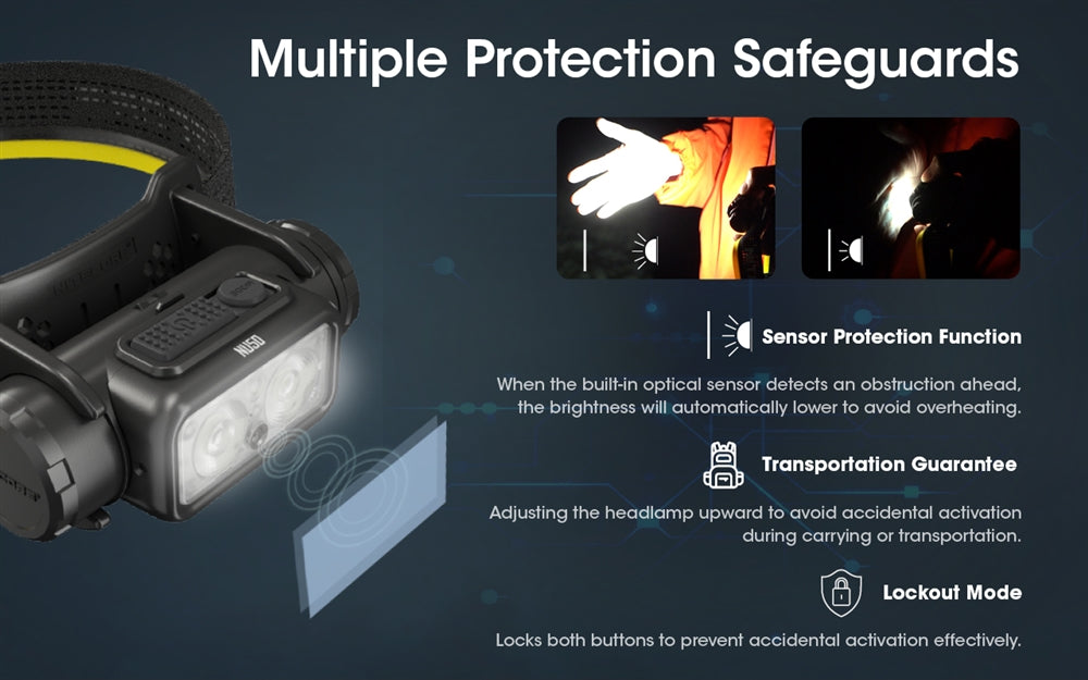 The NU50 is ready for the most vigorous exercises, arduous tasks, and extended use. The stylish headband features a silicone grip strip and perforations for a more breathable, stretchy, and comfortable user experience. Built to last, the NU50 can resist impacts up to two meters. Moreover, NU50 comes with a proximity sensor that automatically dims the light when approaching objects, reducing harsh glare and reflection, and preventing overheating. Overall, the NU50 headlamp is a reliable and high performing lighting solution for various outdoor activities.