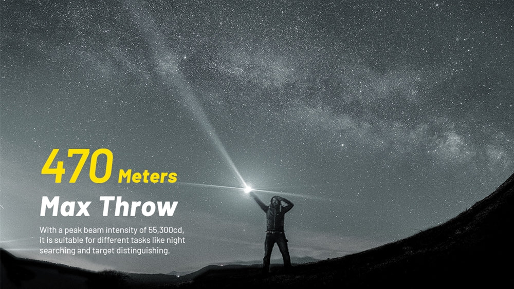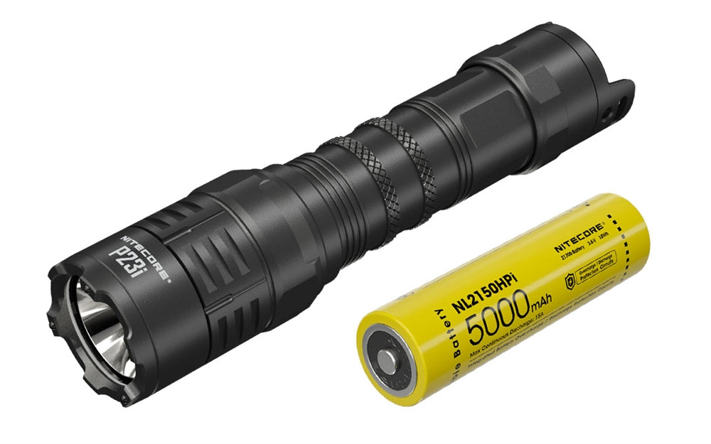 The Nitecore P23i rechargeable flashlight is super bright and compact with long throws. It achieves 3000 lumens max and reaches 512 yards of beam throw, thanks to the single SFT-70 LED and a large polished reflector. The Nitecore P23i is the culmination of all the new upgrades fans have been asking for in the P series. It throws farther than the P20i, but is far more compact than the P30i.