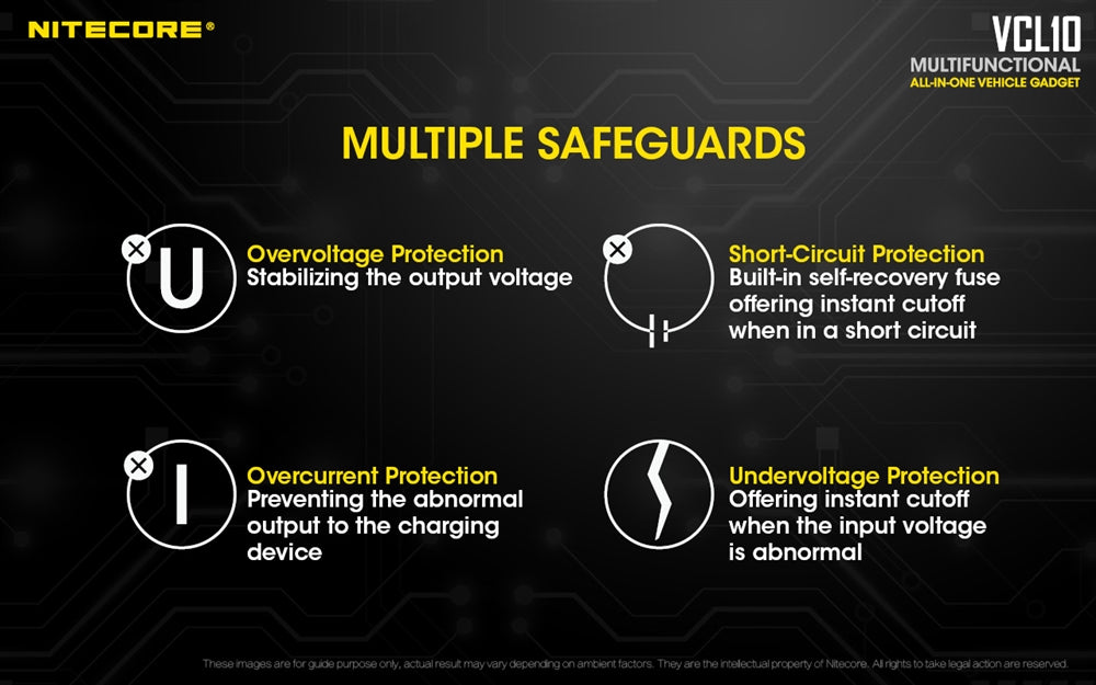 The NITECORE VCL10 is the ultimate all-in-one vehicle gadget you'll always want to keep handy. With both QuickCharge 2.0 and 3.0 USB charging available, the VCL10 is capable charging your Android or iOs devices at 2.4A max speed. With multiple safeguards to stabilize charging current and voltage and prevent short circuits, you can rest assured your gear is in good hands.