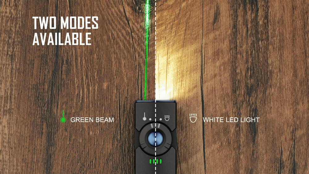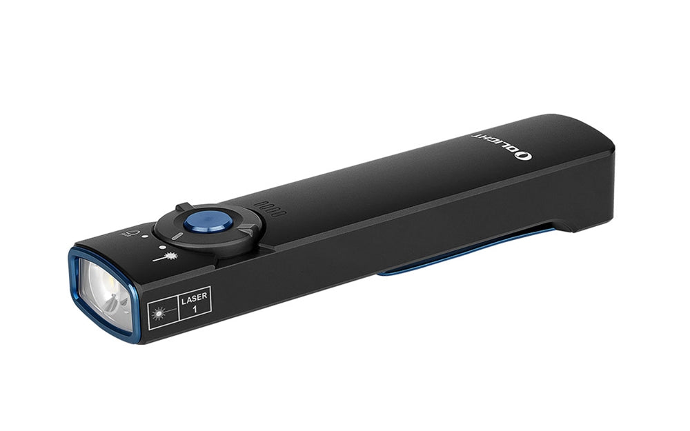 The intuitive rotary flip switch toggles between flashlight and laser pointer. The large single button in the center has Olight's standard operation scheme. Tap for on and off, or hold to cycle between the brightness modes. Double tap for turbo mode, and triple tap for strobe. The light comes with mode memory and will return to the brightness you were using when turning back on or switching back from the green laser.