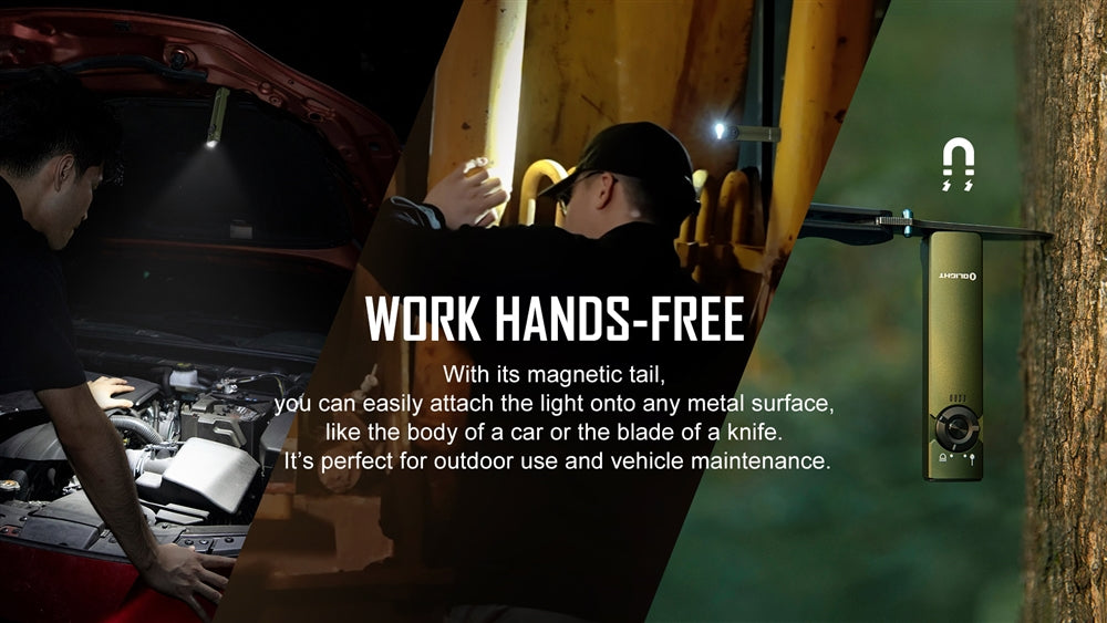 The Olight Arkfeld is a 1000 lumen flashlight with green laser pointer that will bring a breath of fresh air to your EDC kit. The unique slim ultra-thin profile can easily slip into your pocket, or use the clip to secure it to straps, or loops. The bright green laser pointer is an excellent tool for surveying, presenting, or demonstrating; while the flashlight is a perfect EDC companion for emergencies or daily tasks. The smooth uniform lines of the Olight Arkfeld feel great in hand and looks coolon your instagram.